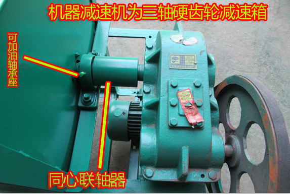 減速箱為三軸硬齒輪箱減速,效率高,力度大,同心聯(lián)軸器連接確保機(jī)器高效運(yùn)轉(zhuǎn)�!韭�(lián)軸器為同軸連接器,比螺絲固定連接要更堅(jiān)固,更可靠,螺絲連接容易斷螺絲,容易出現(xiàn)不同心現(xiàn)象】